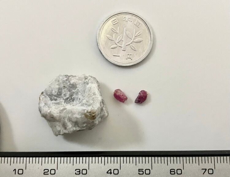 〇小さいルビーコランダム2つも、母岩部分やインクルージョン等あるものです。