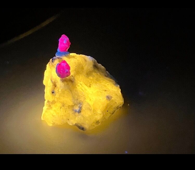 強蛍光 カナダ産 ウェルネル石 ミャンマー産 ルビーコランダム ミニ原石2個 うみうしイメージ 強蛍光生き物石 台座付